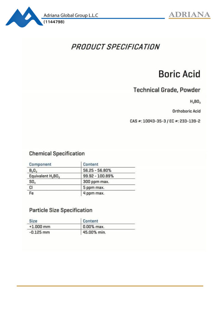 Boric acid produced by the reputable Turkish company Eti Maden is available in 25 kg, 50 kg, and 1000 kg packaging options.