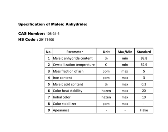 Maleic Acid is a high-purity dicarboxylic organic compound, typically available in white crystalline or powder form. Due to its strong reactivity and acid properties, it serves as a key raw material across various industrial applications.